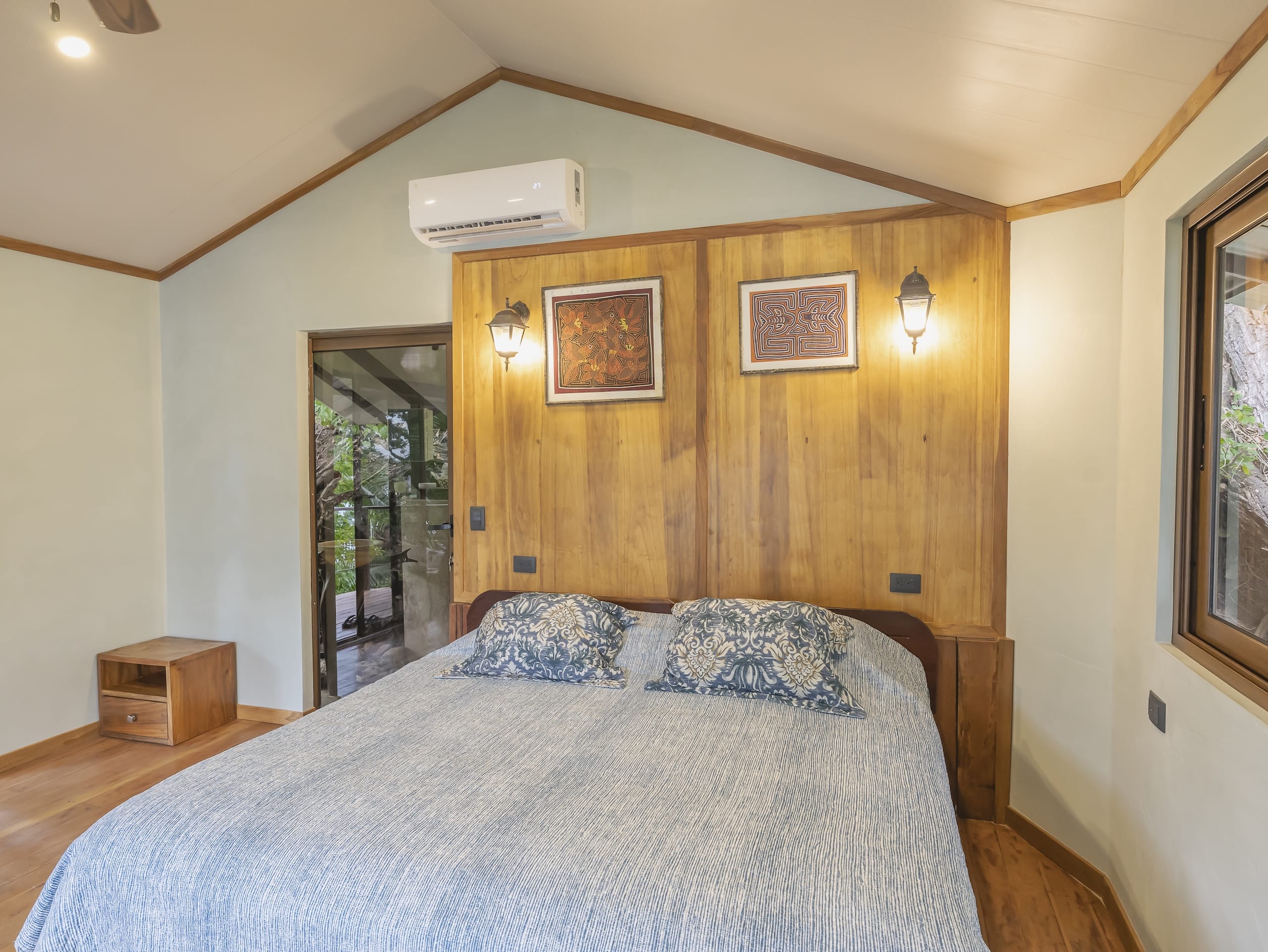 Equipped with air conditioning and a ceiling fan, the room ensures a cool and pleasant atmosphere regardless of the tropical weather. The private bathroom offers a unique shower experience with views of the surrounding nature, adding an extra touch of tranquility to your daily routine. Step out onto your private balcony, furnished with cozy outdoor seating, and take in the stunning ocean vista. Whether you’re enjoying morning coffee or an evening sunset, this space invites relaxation and connection to the natural beauty around you.